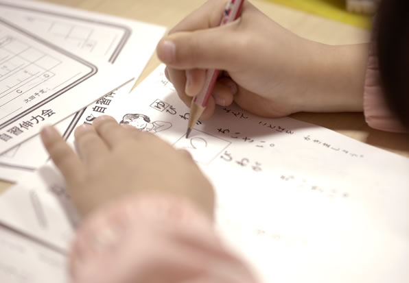 同じ学年でも、違うプリントをすることも。みんな進み方が違うから、ここではそれが当たり前。プリントをこなした数だけ、本当の学力になっていく。